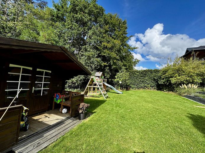 Die Immobilie liegt am Ende eines Wendehammers in einer ruhigen, ehemaligen Ferienhaussiedlung, direkt am Birgeler Urwald – einem beliebten Natur- und Wandergebiet.