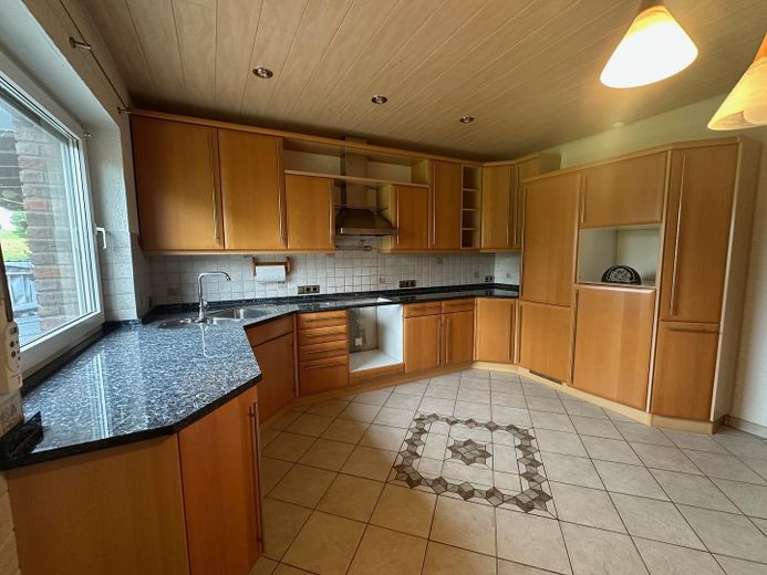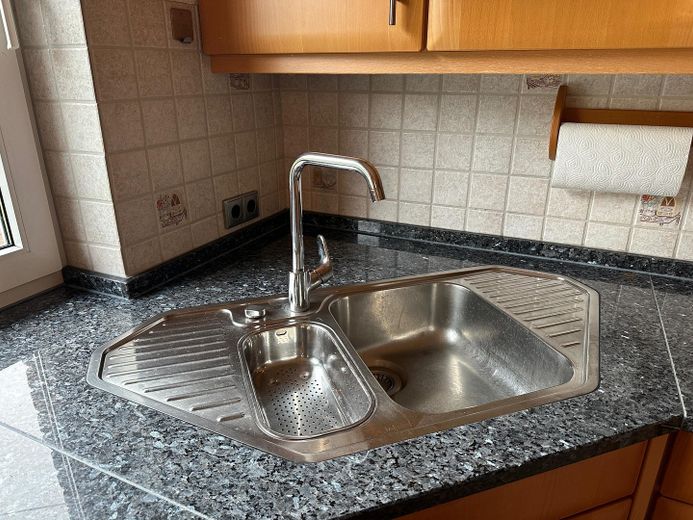 In der Küche befindet sich eine Echtholz Einbauküche mit einer Granit Arbeitsplatte.