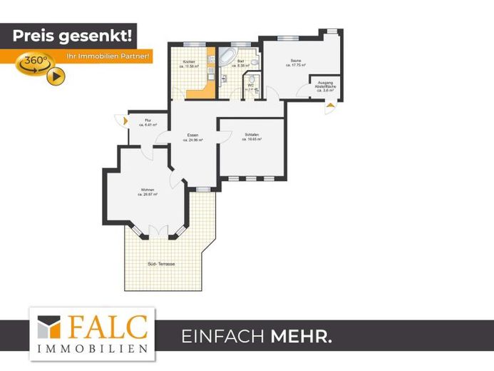 Besonders hervorzuheben ist die Süd-Terrasse, die zum Entspannen und Genießen nach draußen einlädt und somit den Wohnraum erweitert. Hier genießen Sie Ihre gemütlichen und geselligen Abende im Freien.