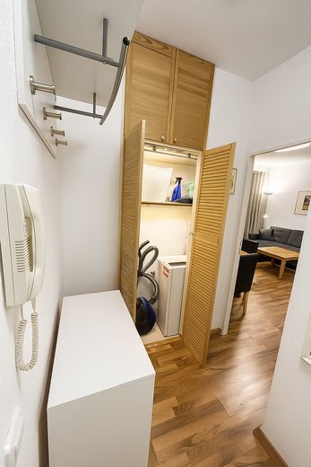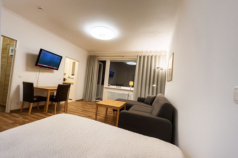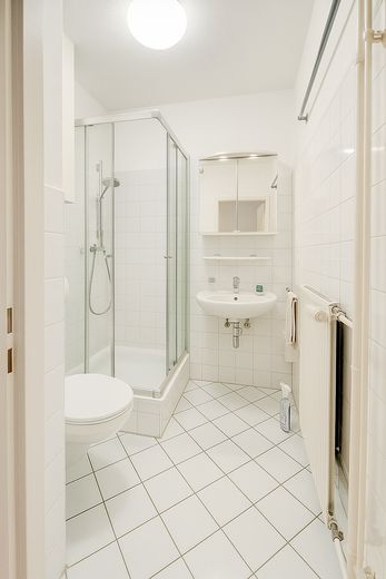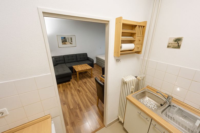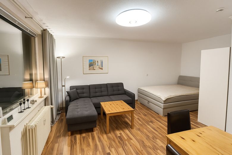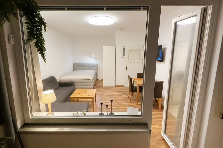 Die frisch renovierte 1-Zimmer-Wohnung befindet sich im 2. Obergeschoss (Zählweise Erdgeschoss = 0) eines gepflegten Mehrfamilienhauses in ruhiger und grüner Lage von Berlin-Spandau (Wilhelmstadt), Heerstraße, 13593 Berlin. Mit ca. 32 m² Wohnfläche bietet sie ein helles Wohngefühl durch große dreifachverglaste Außenfenster und durchgehende LED-Beleuchtung in allen Bereichen. Zur Ausstattung gehören ein hochwertiges Boxspringbett mit Topper in Comforthöhe, eine Couch mit Schlaffunktion, eine moderne Einbauküche, ein Balkon mit Südost-Ausrichtung und grünem Blick sowie ein stilvoller Terracotta-Fußboden. Der Flur ist mit Garderobe ausgestattet, ein praktischer Abstellraum mit Waschmaschine (Nebengelass) ist vorhanden. Zusätzlich stehen ein Kellerraum und ein Fahrradraum zur Verfügung.