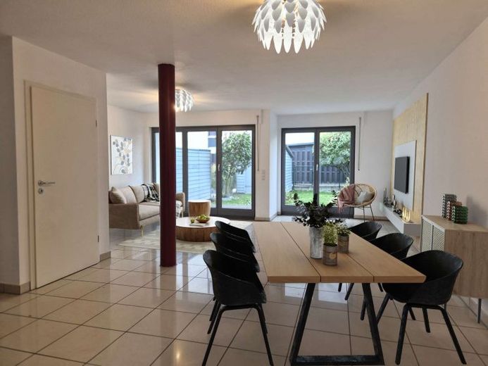 Dieses gut geschnittene Reihenmittelhaus ist sofort bezugsfertig und bietet reichlich Platz für Familie, Homeoffice und Hobbys. Auf rund 145 m² Wohnfläche verteilen sich vier Zimmer und ein Dachstudio. Der helle Wohn- und Essbereich mit offener Einbauküche ist großzügig gestaltet und bietet gute Stellmöglichkeiten. Von der Couch blicken Sie in den pflegeleichten Garten. Die Terrasse mit West-Ausrichtung wird komfortabel mit einer Markise beschattet. Drei Schlafzimmer, ein Dachstudio mit eigener Dachterrasse sowie ein Tageslichtbad mit Badewanne und Dusche verteilen sich auf die beiden Obergeschosse. Im Keller stehen drei weitere Räume zur Verfügung, darunter ein großer, beheizter Hobbyraum mit Fenster. Für weiteren Komfort im Alltag sorgt das Gäste-WC, das Gartenhaus sowie zwei Autostellplätze (Carport).