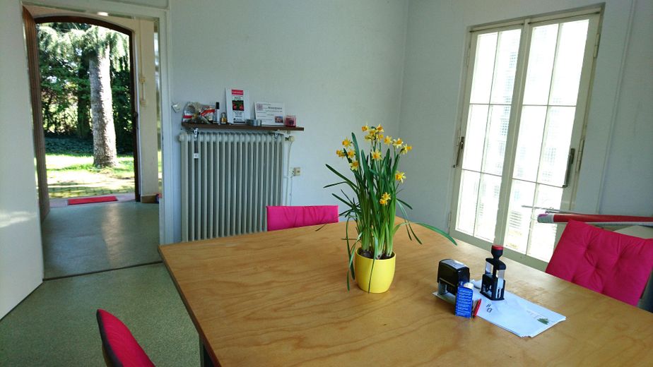 1. Bürogebäude (ca. 70 qm) mit WCs + Keller mit Ölheizung (Viessmann), was früher meine Mutter als Praxis für ihre Krankengymnastik benutzt hat.