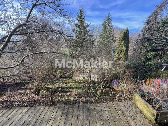 Der großzügige Wohnbereich öffnet sich zu einem überdachten Balkon, der zum Verweilen im Freien einlädt und einen schönen Blick ins Grüne bietet. Das Zimmer mit Zugang zur Terrasse (Souterrain) eignet sich ideal als Schlafzimmer oder als flexibler Raum für Gäste, Homeoffice oder Hobbys. Das Grundstück mit ca. 374 m² bietet viel Aufenthaltsqualität im Freien bei überschaubarem Pflegeaufwand.