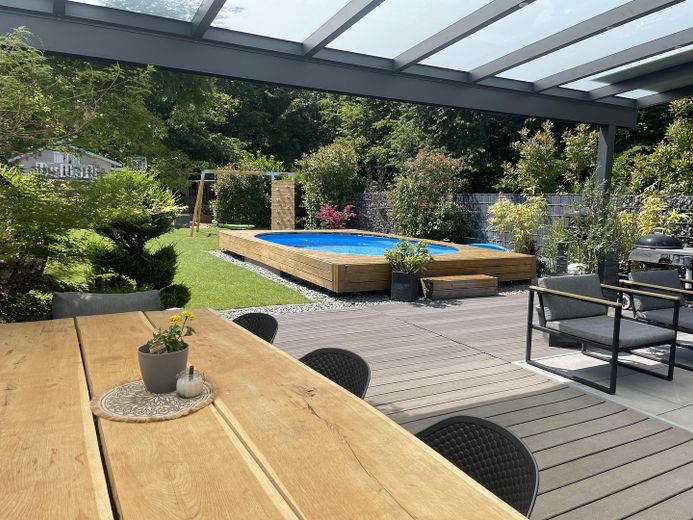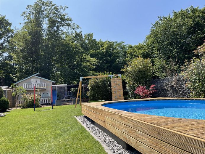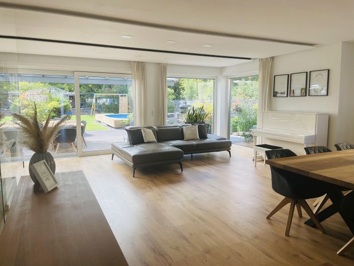 Diese beeindruckende Immobilie bietet Ihnen auf über 170qm Wohnfläche, einem Wohnkeller und einem großzügigen Grundstück von 620qm mit einem Zugang zur Waldallee, ein unvergleichliches Wohngefühl. Zwei Badezimmer, eines davon mit einer Sauna und sechs attraktive Zimmer machen das Haus zu einem Ort zum Wohlfühlen.