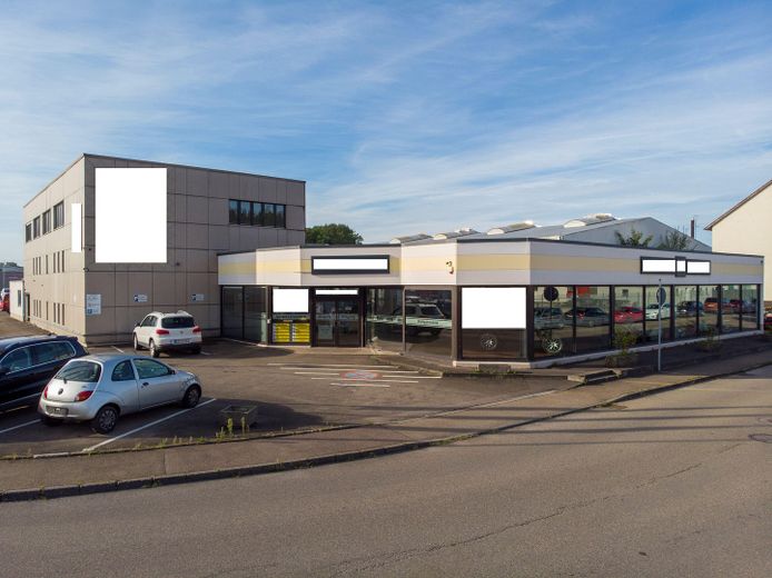Der Gewerbekomplex gliedert sich in insgesamt zwei Baukörper auf einem ca 4000 m² Grundstück. Herzstück ist der Hauptkomplex, dieser verbindet eine großzügige Ausstellungshalle mit Bürobereichen sowie einer weitläufigen Werkstatt. Zusätzlich stehen praktische Lagerflächen im Untergeschoss zur Verfügung.
