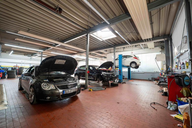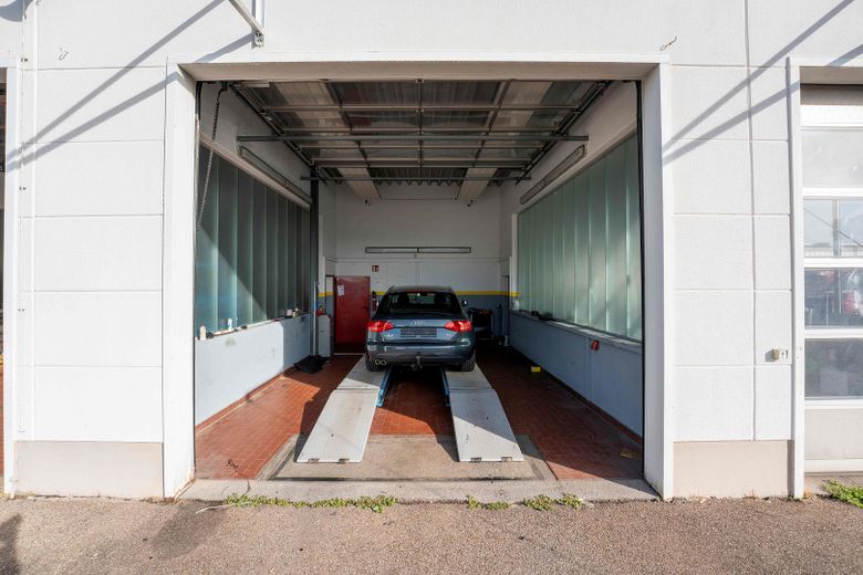 Neben dem Hauptkomplex befindet sich ein separater Baukörper mit einer PKW-Waschanlage sowie einem Nebenraum mit integrierter Hebebühne. Die Kombination ermöglicht sowohl Fahrzeugpflege als auch kleinere Reparatur- oder Aufbereitungen direkt vor Ort. Damit eignet sich der Bereich ideal als Ergänzung zum Hauptbetrieb oder für eigenständige Dienstleistungen im Automobilsektor.