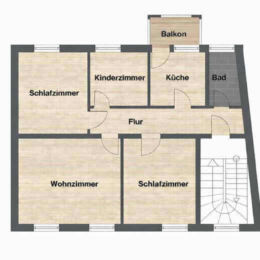 • Alle Räume separat vom Flur begehbar