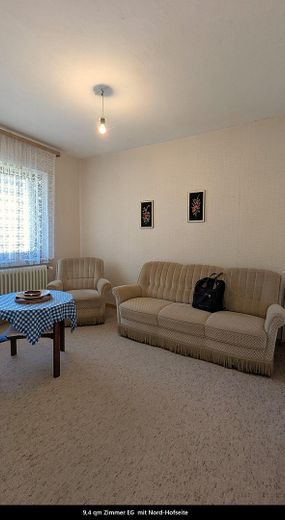 Die Wohnfläche beträgt 132 qm, die Nutzfläche 122 qm, 2/3 Unterkellert mit Hauswasserbrunnen. Im EG befindet sich ein großzügiges Wohnzimmer, Schlafzimmer, zwei kleinere Zimmer und eine Küche mit Ausgang zum Wirtschaftsraum. Vom Wirtschaftsraum geht`s zum Bad/Dusche/WC und einem weiteren WC/Dusche.