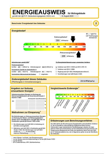 Endenergieverbrauch laut *Bedarfsausweis: Klasse G / 211 kWh (qm-a)