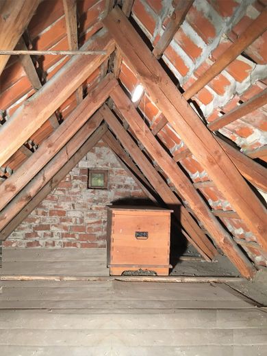 Der Spitzboden ist über eine Lukenleiter vom Hausflur erreichbar. Es gibt drei freie Kaminzüge im Haus mit einem Doppelzug. Naturholzfenster mit Isolier-/und Wärmeschutzglas. Für die einfache Gartenbewässerung ein Hauswasserbrunnen mit Handschwengelpumpe im Außenbereich.
