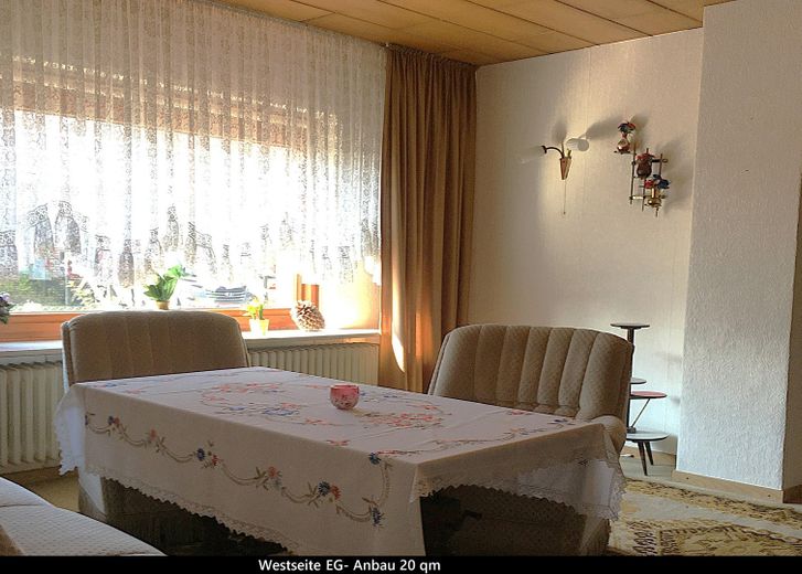 Das Wohnhaus mit Stallanbau wurde 1953 in Massivbauweise erbaut und 1963 durch einen weiteren Wohnhausanbau vergrößert. Eine Doppelgarage und ein geräumiger Geräteschuppen gehören zum Bestand. Durch mehrfache Modernisierungsarbeiten wurde das Haus immer wieder verbessert: Tonziegel-Fassadendämmung und Versorgungsleitungen bis Kellergeschoss im Jahr 1990, eine Tieftemperatur Ölheizung mit Baujahr 2000, eine energetische Dachsanierung des ehemaligen Stallanbaus 2007 nach ENEV.