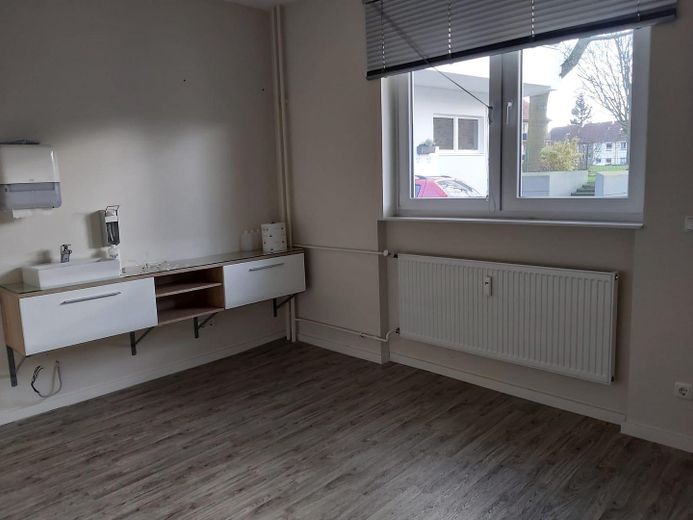 Die barrierefreien Räumlichkeiten haben eine Nutzfläche von ca. 85 qm, befinden sich im Erdgeschoss eines Wohn-/Geschäftshauses und können ab 1. November 2025 angemietet werden.