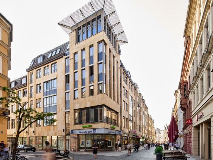 Das Objekt wurde im Jahr 1997 als modernes Einkaufszentrum an derselben Stelle errichtet, an der das gleichnamige, alteingesessene Kaufhaus während der letzten Kriegstage zerstört wurde.