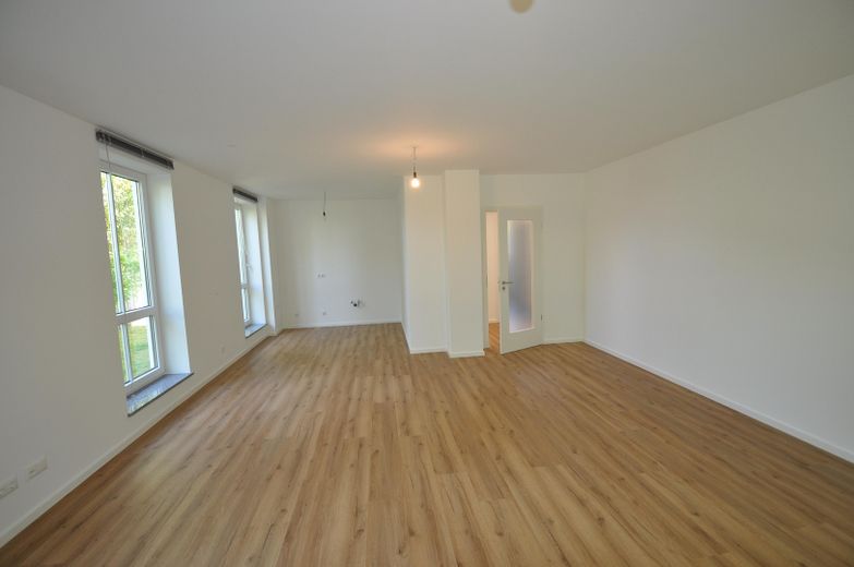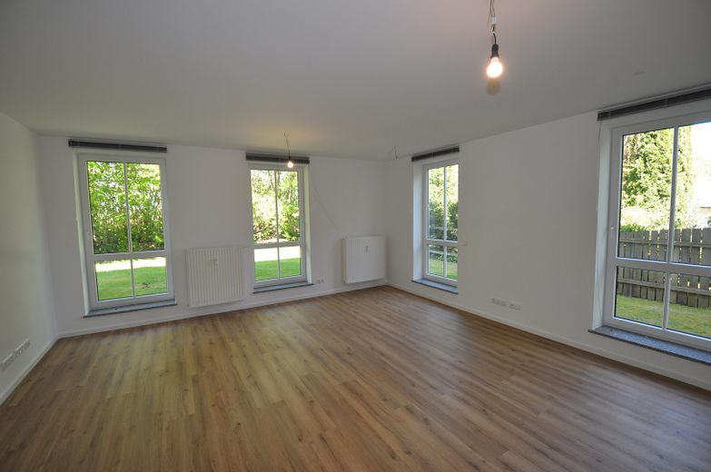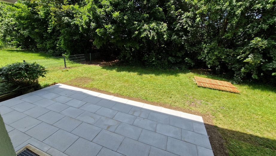 Die tolle und schön geschnittene Gartenwohnung befindet sich im Erdgeschoss eines 2-stöckigen Hauses mit insgesamt 7 Einheiten. Die 3 Zimmer-Wohnung besteht aus einem sehr geräumigen und praktisch nutzbaren Flur als Eingangsbereich. Schlafzimmer mit ausreichend Stellmöglichkeit für Kleiderschränke oder auch zusätzlich mit Schreibtisch für Home-Office. Zusätzliches Kinder oder Arbeitszimmer mit zwei Fenster/Türen. Ein großen Wohnraum mit offenen Küchenbereich und genügend Fläche zum Einbau einer selbst zu gestaltenden Küche. Vom Wohnzimmer tritt man von hier auf die Terrasse und in den schönen Garten mit großer Rasenfläche umgeben von eingewachsenen Sträuchern und Bäumen als herrliche Schattenspender in den Sommermonaten. Das WC mit Waschbecken und einem Urinal ist als separater Raum vom Badezimmer aus zugänglich. Im Bad befindet sich eine schöne Dusche mit Echtglasduschkabine und Stell- und Anschlussmöglichkeit für Waschmaschine und Trockner. Die gesamte Wohnung, ausgenommen Badezimmer und WC ist durchgehend mit hochwertigen Designer Vinylbelag in Holzoptik ausgestattet. Das Badezimmer und WC sind mit schönen Fliesen teils raumhoch gefliest. Im Kellergeschoss befindet sich noch ein eigenes Kellerabteil mit ca. 6 m² und gemeinschaftlich genutzte Kellerräume wie Trockenraum. Es stehen zwei PKW-Stellplätze mit einem Carport überdacht zur Verfügung.