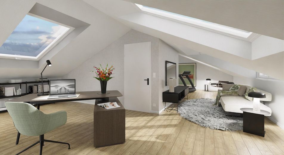 Das Dachgeschoss als Ausbaureserve bietet zusätzlichen Wohnraum von ca. 40 m² und ist vielseitig nutzbar – sei es als Arbeitszimmer, Hobbyraum oder weiteres Schlafzimmer. Die flexible Gestaltungsmöglichkeit lässt Raum für Ihre individuellen Wünsche und Bedürfnisse. Sollte ein Bad im DG gewünscht sein, ist dies problemlos möglich. Die Anschlüsse sind im Kaufpreis enthalten, die Kosten zur Herstellung eines Bades werden als Aufpreis berechnet.