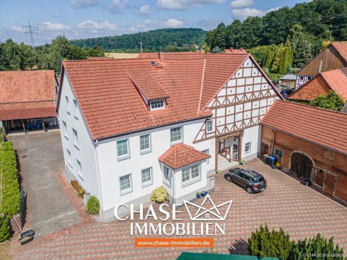 Das Haupthaus wurde ca. 1741 in Fachwerkbauweise errichtet und ca. 1950 um einen Massivanbau ergänzt. Die erste Wohnung befindet sich im Erdgeschoss und setzt sich aus großflächiger Wohndiele mit Kamin, Wohnzimmer und Schlafzimmer zzgl. Küche und Badezimmer zusammen. Von hier aus gelangen Sie auch in die hinten liegenden Stallungs- und Wirtschaftsräume sowie ein Duschbad, die gemeinschaftlich genutzt werden (können).