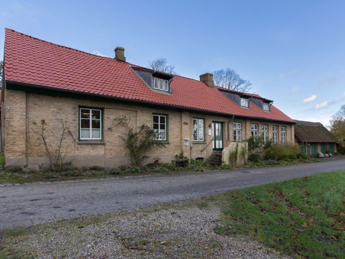 Vom Flur sowie von der Küche aus gelangen Sie in den lichtdurchfluteten Wohn- und Essbereich. Die großen, im dänischen Stil gehaltenen Fenster schaffen eine warme, freundliche Atmosphäre mit herrlichem Blick ins Grüne und auf den alten Baumbestand des Gutes. Ein Kaminofen sorgt an kühlen Tagen für wohlige Wärme und gemütliche Stunden.