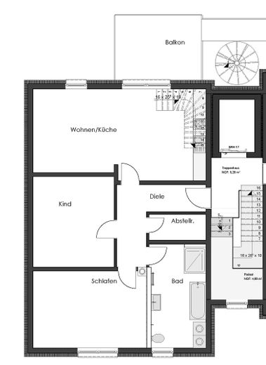 Es handelt sich um eine 3-Raum Wohnung mit Küche und Wohnraum als offener Grundriss.