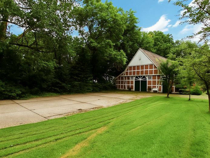 Durch den weißen Zaun, versehen mit einem elektrischen Tor, gelangen Sie über Ihre lange, mit Bäumen gesäumte Hofauffahrt, vorbei an der herrlichen, gepflegten Fachwerkscheune, zu Ihrem neuen Heim und Ruhepol. Beim Öffnen der verglasten Haustür gelangen Sie in Ihren großen offenen Flur,- und Wohnbereich in diesen auch die imposante Holztreppe intergiert ist, die in das Obergeschoss führt. Möchten Sie gemütlich vor dem Kamin sitzen, oder vom Esstisch aus in den Wintergarten schauen? Der große Wohnbereich bietet Ihnen zahlreiche Möglichkeiten zu entschleunigen und in großer Runde zusammen zu sitzen. Die Küche bietet, mit Ihrer doppelten Terrassentür und großen Stellfläche zahlreiche Möglichkeiten und ausreichend Platz, um z.B. Ihr selbst angebautes Gemüse zu verarbeiten. An die Küche angrenzend ist ein großer Hauswirtschaftsraum incl. Platz für Waschmaschine und Trockner. Weiterhin befinden sich im Erdgeschoss ein Gäste WC, ein großer Vorratsraum und das große, zeitlose Badezimmer mit begehbarer Dusche.
