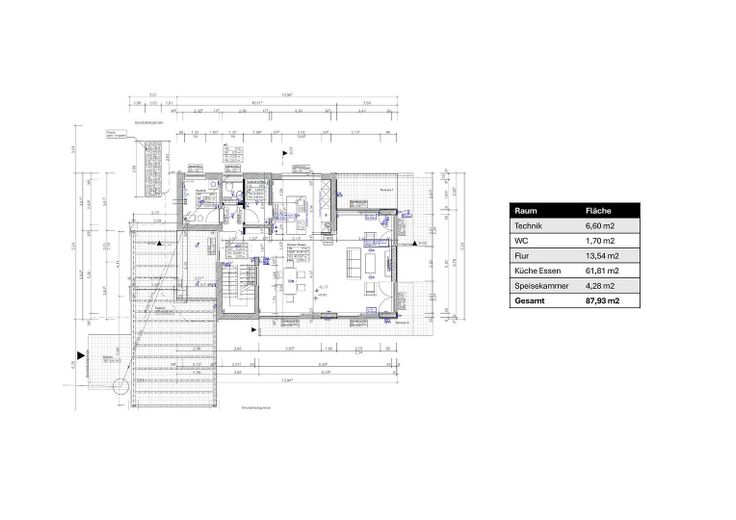 Im Erdgeschoss befindet sich ein offener Wohnbereich mit Küche, Esszimmer und Wohnzimmer sowie großen Fensterfronten mit direktem Gartenzugang. Zusätzlich gibt es ein Gäste-WC, einen Technikraum und eine Abstellkammer.