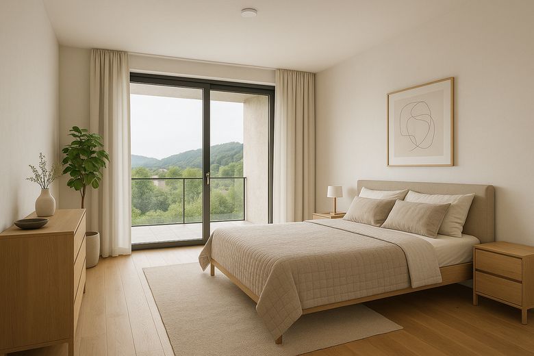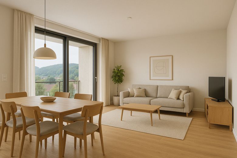 Helle Räume mit bodentiefen Fenstern und hochwertigen Bodenbelägen