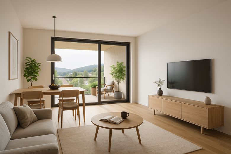 Ein besonderes Highlight ist die Loggia, die den Wohnraum nach außen erweitert und einen herrlichen Blick ins Grüne eröffnet. Dank der Lage im Erdgeschoss genießen Sie hier einen komfortablen, barrierearmen Zugang.