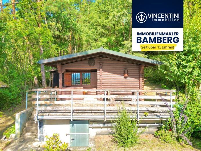 Herzstück des Grundstücks ist eine in den frühen 1970er Jahren errichtete, massive Blockhütte. Die charmante Holzhütte mit Fensterläden bietet zwei Räume: