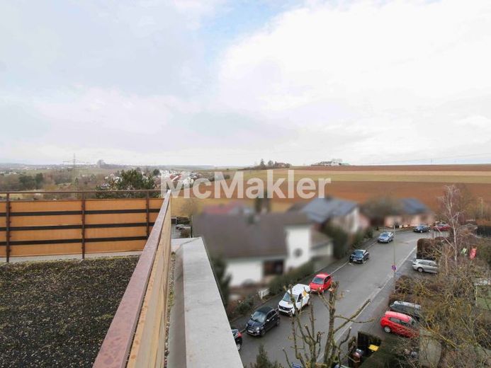 Auf ca. 96,65 m² Wohnfläche verteilen sich drei Zimmer, eine großzügige Dachterrasse und ein zusätzlicher Balkon – ideal, um Sonne und frische Luft zu genießen. Die große Dachterrasse ist nach Süden ausgerichtet und bietet einen traumhaft freien Blick über Ditzingen und die Umgebung.