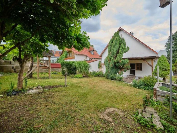Der Gartenbereich ist großzügig angelegt und bietet viel Platz für Freizeit, Gartenarbeit oder Spielmöglichkeiten. Rasenflächen, Obstbäume und ein überdachter Terrassenbereich schaffen einen geschützten Rückzugsraum im Grünen, mitten in der Stadt.