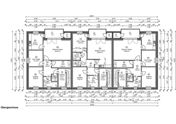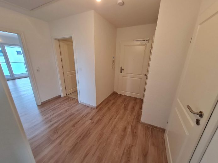 Die Wohnungen verfügen jeweils über zwei Schlafzimmer, Wohnzimmer, separater Küche (3x) oder integrierter Wohnküche (3x) mit Einbauküche, Duschbad, Gäste-WC, HWR (m. Waschmaschinen-Anschluss) und einer großzügigen und teilüberdachten Terrase bzw. Balkon mit Süd-Ost-Ausrichtung sowie einem Mini-Abstellraum direkt an der Terrasse bzw. dem Balkon (z.B. für Stuhlauflagen oder kühle Getränke). Die Wohnzimmer sind hell und haben große, bodentiefe Fenster. Die Carportanlage bietet 6 Pkw-Stellplätze und 6 Abstellräume mit jew. 5 Qm. Fläche. Die OG-Wohnungen haben auf dem Dachboden jew. zusätzliche Abstellflächen.