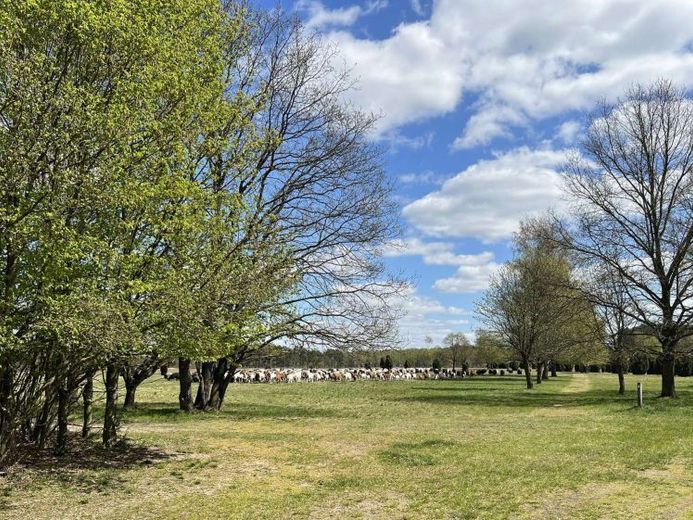 Momentan grasen, im Einklang mit Gänsen und Hühnern, auf der direkt am Haus liegenden Weide, die Pferde der jetzigen Eigentümerin.