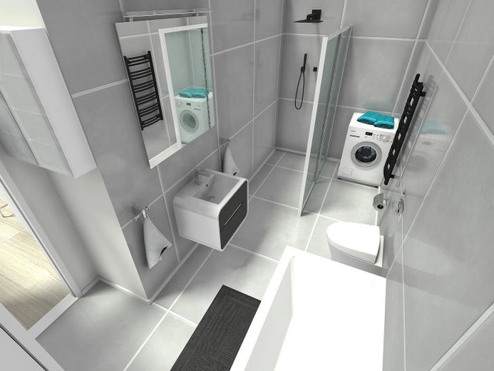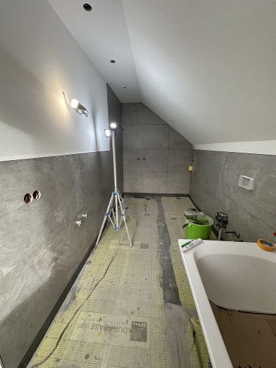 •Das moderne Tageslichtbad wird zum echten Wohlfühlraum: ausgestattet mit einer ebenerdigen Dusche, zusätzlicher Badewanne, großformatigen modernen Fliesen sowie einem Waschmaschinenplatz.