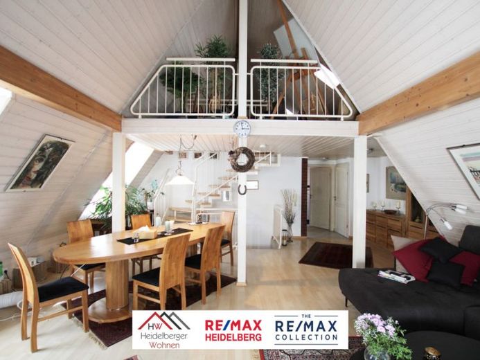 Im Obergeschoss befindet man sich direkt im Wohnbereich, welcher trotz schrägen ein gemütliches Ambiente bietet und mit der Galerie darüber einen besonderen Charm übergibt. Weiter befinden sich zur Linken ein Abstellraum, sowie der Zugang zum zweiten Bad und der offenen Küche, welche im Kaufpreis inklusive ist.