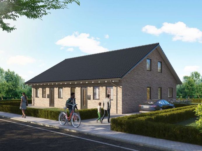 Diese Doppelhaushälfte entsteht als Teil eines modernen Neubau-Ensembles in einem Neubaugebiet in Leck. Der Grundriss ist klar, übersichtlich und ideal für Paare, Best Ager und kleine Familien.