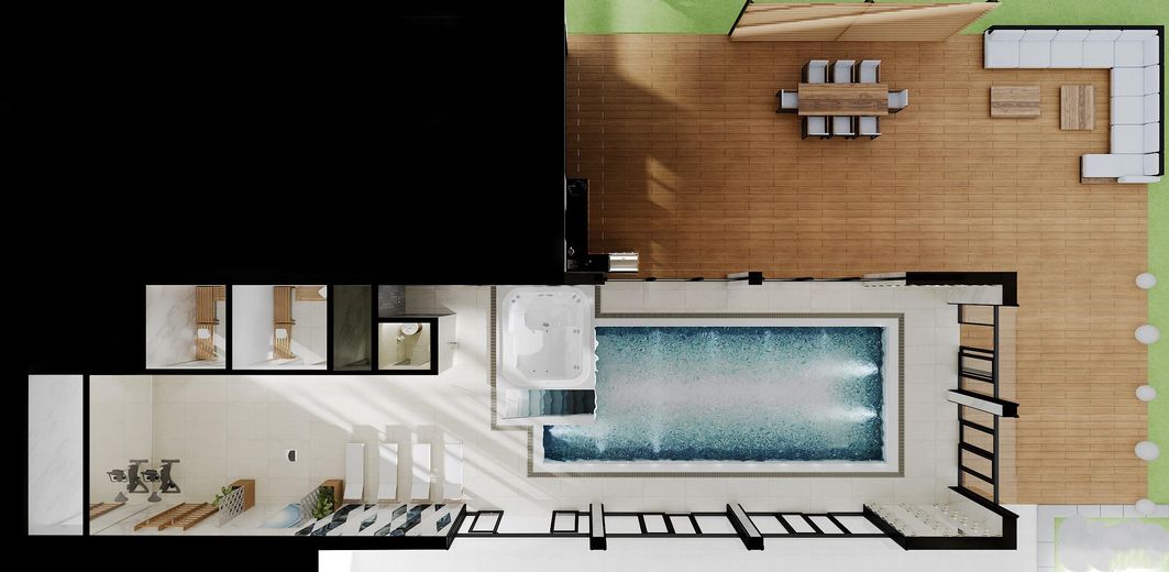 Der erstklassige Wellnessbereich, welcher sich auf einer Fläche von ca. 160 qm erstreckt, umfasst einen großen, vorgeheizten Salzwasserpool (10 m x 4,5 m), eine Finnische Trockensauna mit Himalayasalzwänden, eine hochwertiges Dampfsauna, sowie einen Massageraum. Natürlich nicht unbeachtet bleiben darf der Whirlpool, in welchem man bei 40 Grad Wassertemperatur und vor einem Kamin, einfach nur abschalten kann.