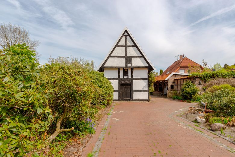 Naturnahes Fachwerkhaus auf liebevollem Grundstück mit Spieker, Carport u. Pergola