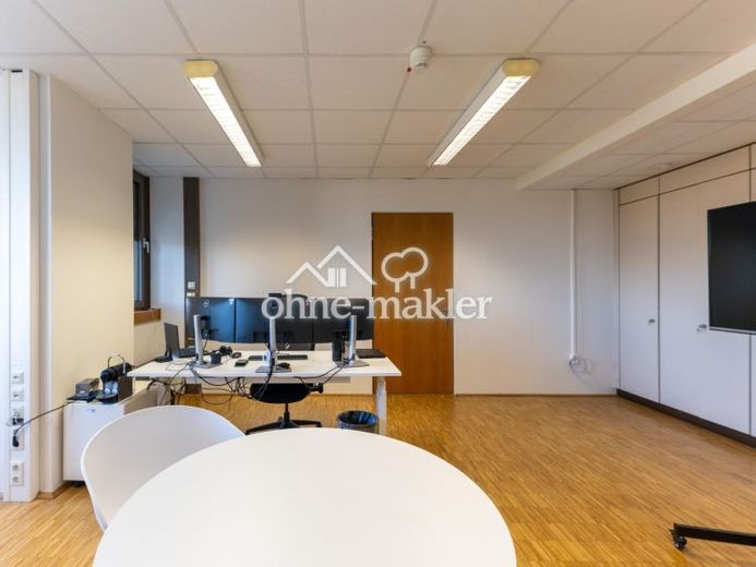 Das hier zu vermietende Büro besteht aus acht Räumen (35,30 m², 30,20 m², 44,60 m² , 39,61 m², 39,61 m², 44,54 m², 41,60 m², 31,35 m²) und befindet sich auf der dritten Etage, die sowohl per Aufzug als auch über das Treppenhaus erreichbar ist. Sechs dieser acht Räume sind durch innenliegende Türen miteinander verbunden. Die gegenüberliegenden Konferenzräume können nach Absprache stunden- oder tageweise gebucht werden. Abgesehen von deckenhohen Aktenschränken werden die Räume unmöbliert vermietet.