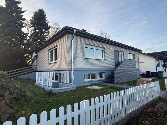 Freistehendes Einfamilienhaus mit Einliegerwohnung und großen Garten mit altem Baumbestand.