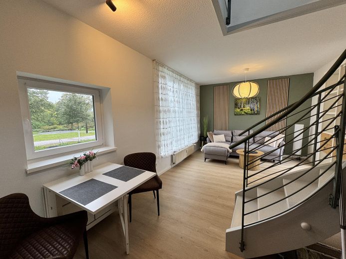 Die Wohnung erstreckt sich über zwei Etagen und bietet zwei Personen großzügigen Raum für individuelles Wohnen.