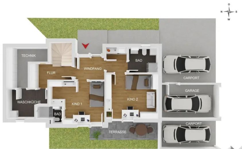 Garage 2 Carports. (Platz für Wohnmobil) Insgesamt 4 Schlafzimmer, 3 Bäder und 1 Gäste WC, sowie eine Galerie geignet als Homeoffice Arbeitsplatz