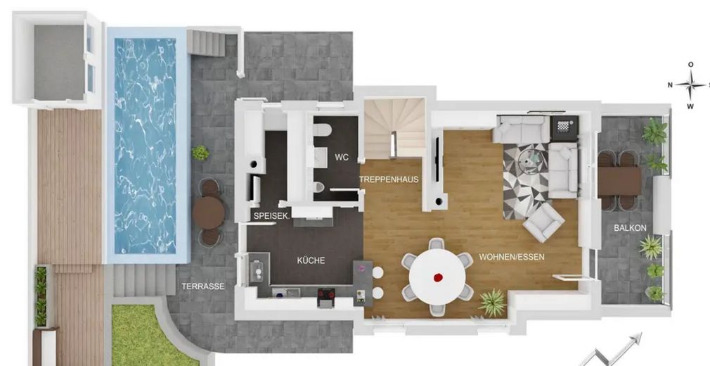 Pool mit Gegenströmanlage und Glasdach verschiebbar abschliesbar, beheizbar.