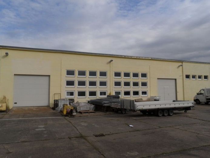 Die zweite Gewerbehalle wurde als Stahlskelettbau mit 24 cm starken Gasbetonsteinen ausgefacht. Das Dach ist mit Metallplatten auf Holzbohlen gedeckt und mit einer Unterspannbahn versehen. Die nutzfläche der Halle beträgt ca. 244 m². Auch diese Halle verfügt über ein großes Sektionaltor sowie einen zusätzlichen Eingang über eine Metalltür. Die Halle ist als frostfreie Kalthalle ausgeführt und bietet ausreichend Rangier- und Zufahrtsmöglichkeiten auch für LKW.