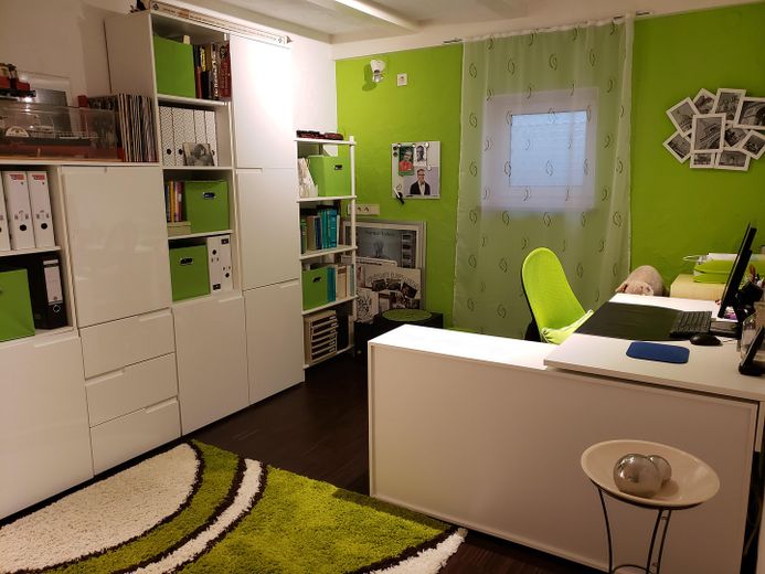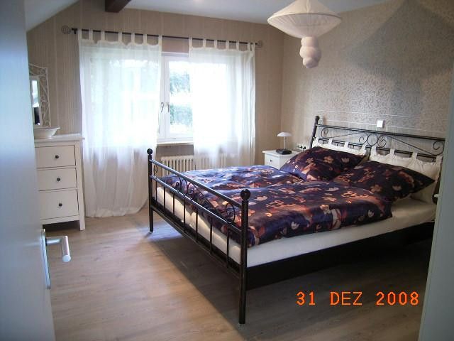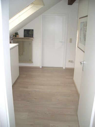 Im OG befindet sich ein weiterer großer, offener Raum, der aktuell als zusätzliches Wohn-Fernsehzimmer mit Büro genutzt wird.. Dieser könnte bei Bedarf auch in 2 Räume geteilt und z.B. als Kinderzimmer umgestaltet werden. Über einen Flurbereich gelangt man in das Schlafzimmer, einen begehbaren Kleiderschrank sowie ein sehr großes Badezimmer. Im OG wurde außer im Bad, einheitlich ein hochwertiger, moderner und strapazierfähiger Laminatboden verlegt.