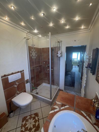 Im Obergeschoss befinden sich drei gut geschnittene Schlafzimmer sowie ein helles Duschbad aus dem Jahr 2005. Das Dachgeschoss mit ca 40qm ist durch eine Einschubtreppe erreichbar und kann zu Wohnzwecken ausgebaut werden - ideal als Jugendzimmer, Homeoffice oder Hobbybereich.