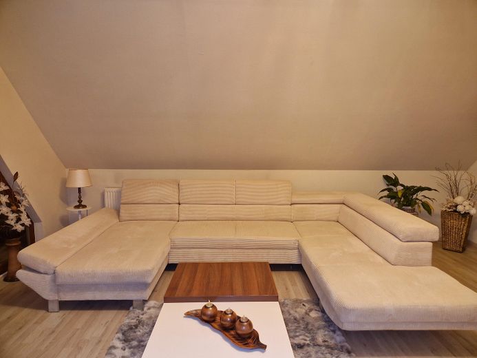 geräumiges Wohnzimmer mit separat verglasten Balkon/Loggia und einen schönen, weiten Ausblick.