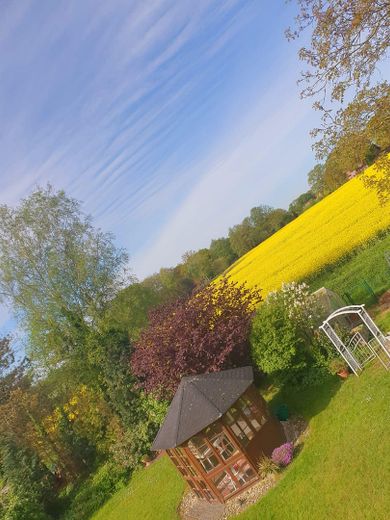 Das großzügige Gartengrundstück mit Süd/Westausrichtung ist komplett eingefriedet. Im Garten steht ein Pavillon, ein Garten-/Gerätehäuschen, kleines Gewächshaus sowie ein PKW-Anhänger-Port.