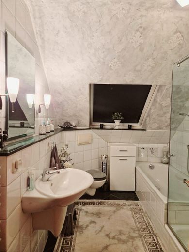 großes Schlafzimmer mit Ankleidebereich (voll ausgestattet) Kinderzimmer bzw. Gästezimmer, Bad mit Dusche/Wanne/WC und Fußbodenheizung, geräumige Diele, Flur, Abstellraum.