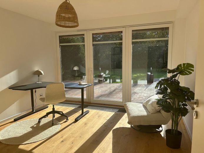Das Erdgeschoss bietet viele große und lichtdurchflutete Wohn-, Arbeits und Freizeiträume. Alle haben einen direktem Zugang in den großen, grünen Garten, der von außen nicht einsehbar ist. Die schöne Wellnessoase bietet neben einer gemütlichen Sauna auch ein voll ausgestattetes Badezimmer und eine große und gemütliche Entspannungszone. Gleich nebenan findet sich Platz für einen kleinen Fitnessbereich. Sport, in die Sauna, Entspannung und eine warme Dusche – und das im eigenen Zuhause. Besser geht es nicht!