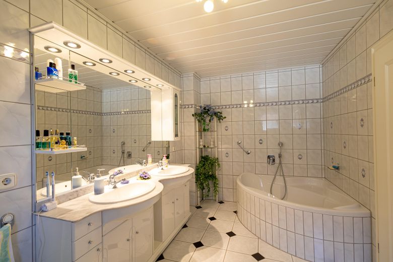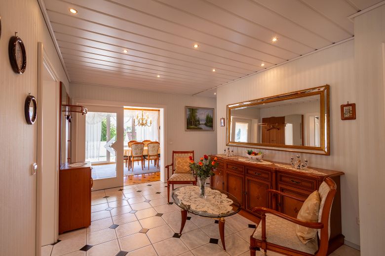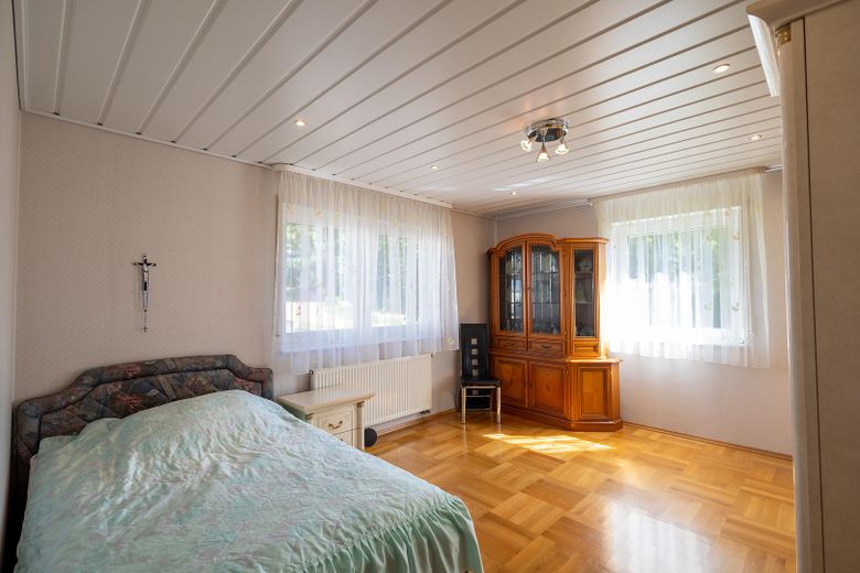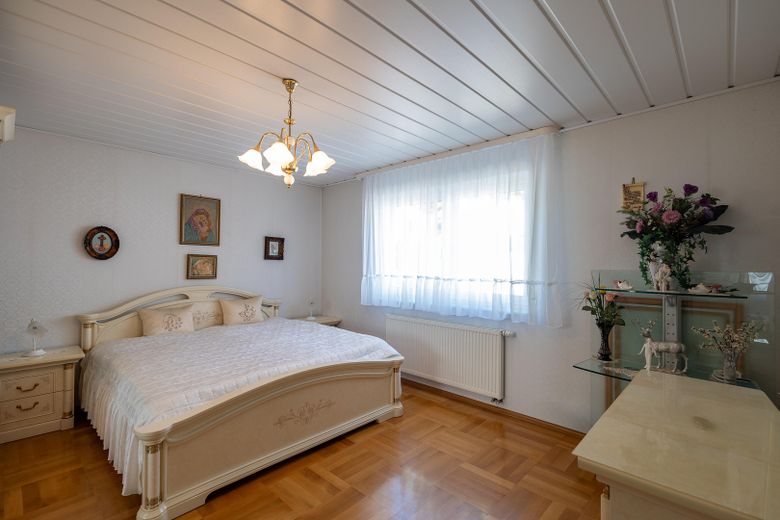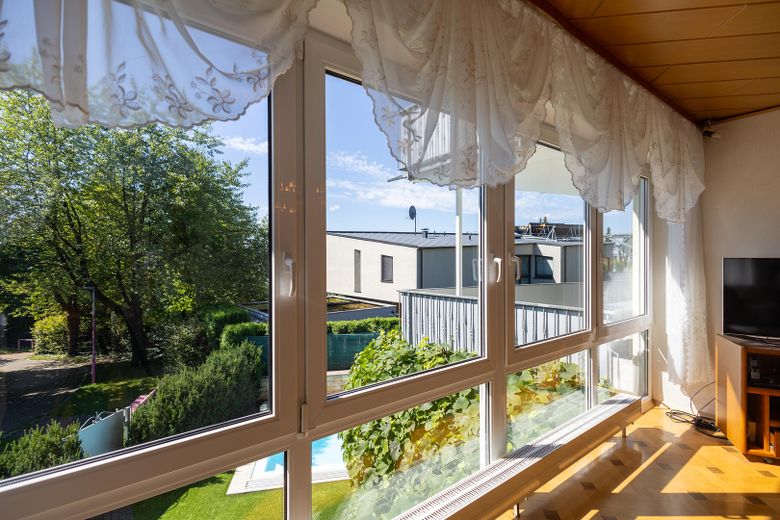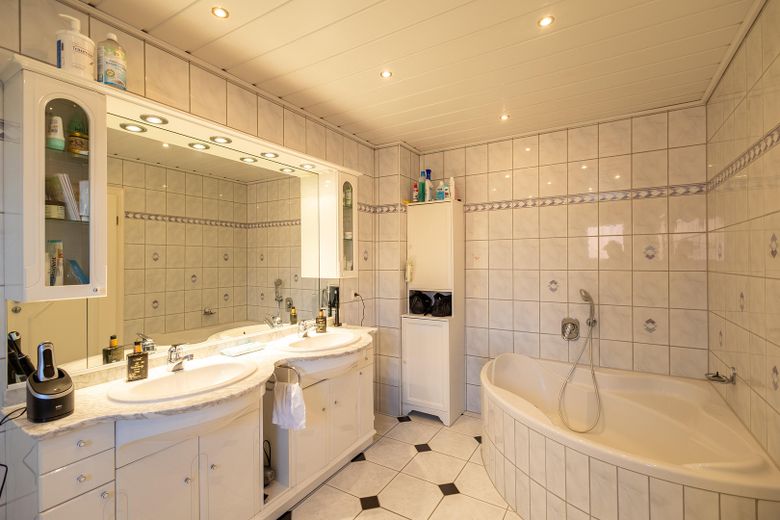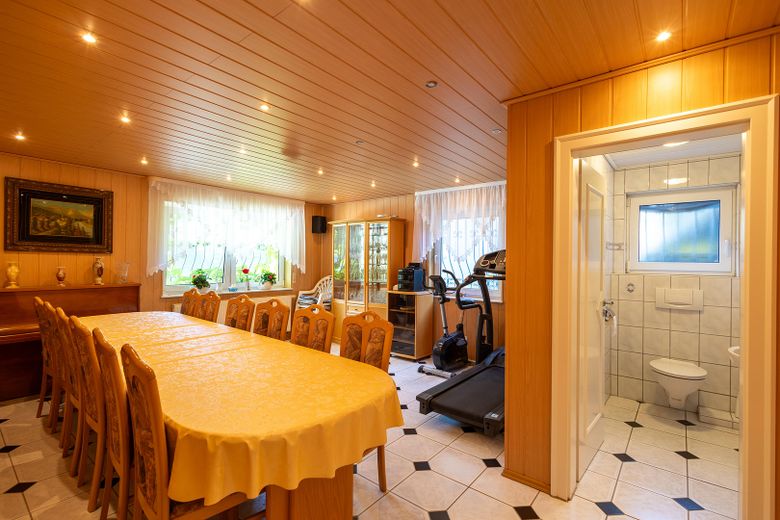 Im Außenbereich überzeugt das Anwesen mit liebevoll angelegten Terrassenflächen, dem privaten Pool und ausreichend Platz für gesellige Abende oder sonnige Nachmittage. Die ruhige, grüne Umgebung schafft ein hohes Maß an Lebensqualität. Für Familien besonders attraktiv: Die Grund- und Realschule erreichen Sie in nur rund 500 Metern bequem zu Fuß.