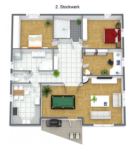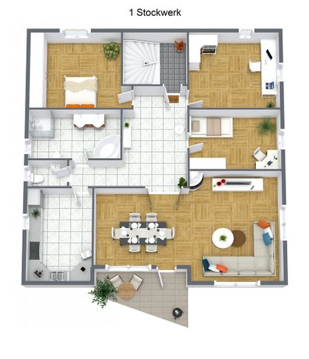 Jede Etage ist großzügig gestaltet und überzeugt durch eine hochwertige Ausstattung. Im Erdgeschoss erwarten Sie circa 132 qm Wohnfläche, einem offenen Kamin und einem lichtdurchfluteten Wohn- und Essbereich.